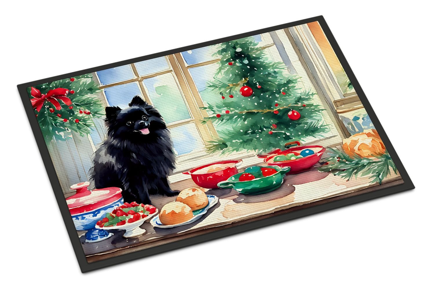 Doormat featuring breed specific Pomeranian artwork. Celebrate Christmas with this Christmas Doormat. Welcome your guests in style with our Artwork Door Mat, designed to withstand almost any weather condition. This mat, measuring approximately 24 by 36 inches, is held together by durable black binding tape. Its top layer, composed of polyester felt, is dyed with the eye-catching image you see on the mat. A few layers below provide the mat with stability, while its rubber bottom is stamped to help prevent slipping and ensures safety. Our mat works wonderfully as both an indoor or outdoor door mat. For cleaning, simply hose it off with water or use a power washer - no need for any cleaner that produces suds. Avoid scrubbing with a brush, instead, opt for the vacuum on floor setting. Designed manufactured and printed in the USA, this mat is a perfect addition to your porch, outdoor kitchen, entryway, or any indoor space. Its unique design makes it a charming decorative rug that greets your guests and adds a stylish touch to your home decor.