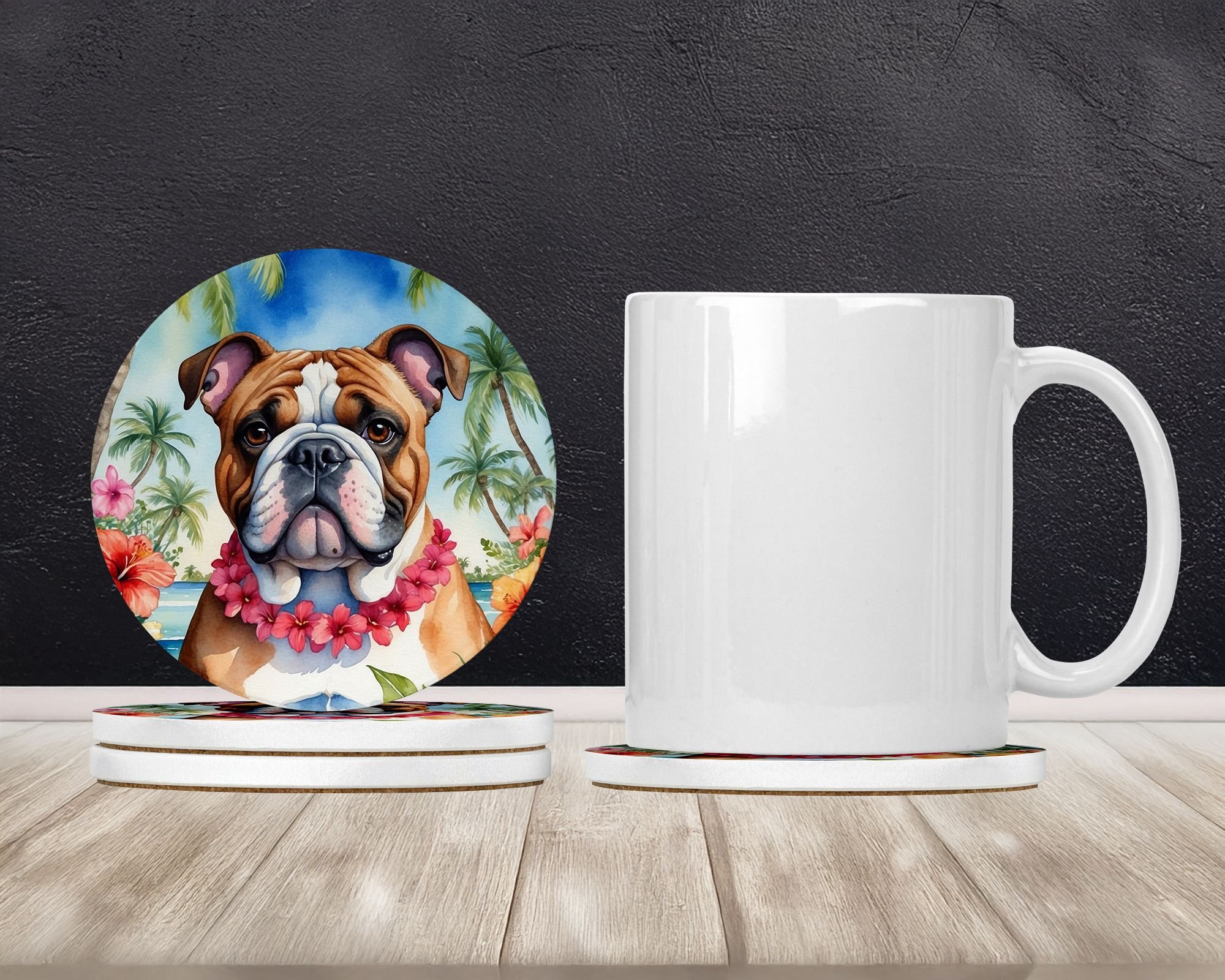 English Bulldog Luau Large Sandstone Coasters Pack of 4 Absorbent Round Coasters Decor Gifts for Men or Women, 4 in, Multicolor