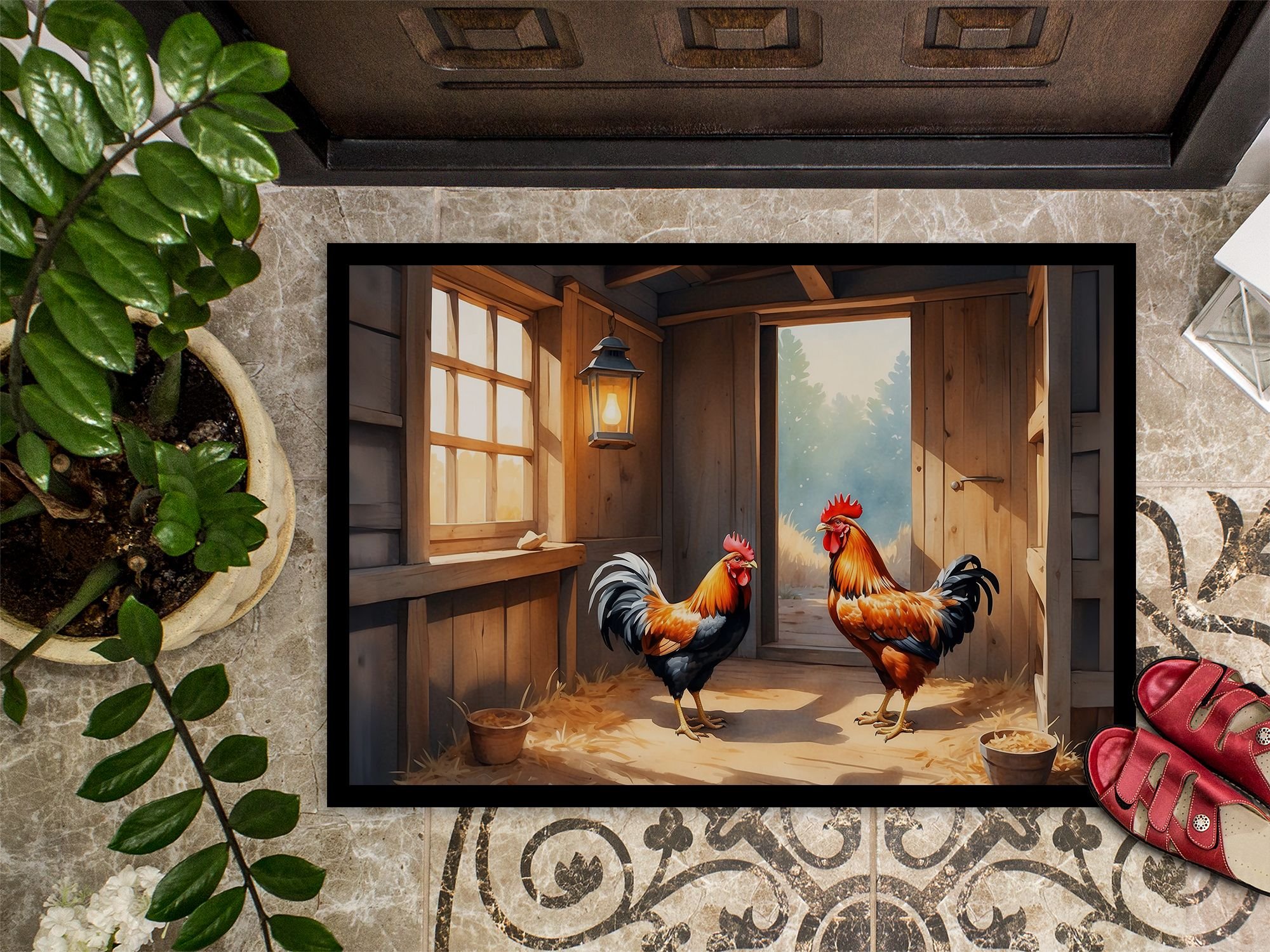 Chickens in the Coop Doormat Front Door Mat Indoor Outdoor Rugs for Entryway, Non Slip Washable Low Pile, 24H X 36W