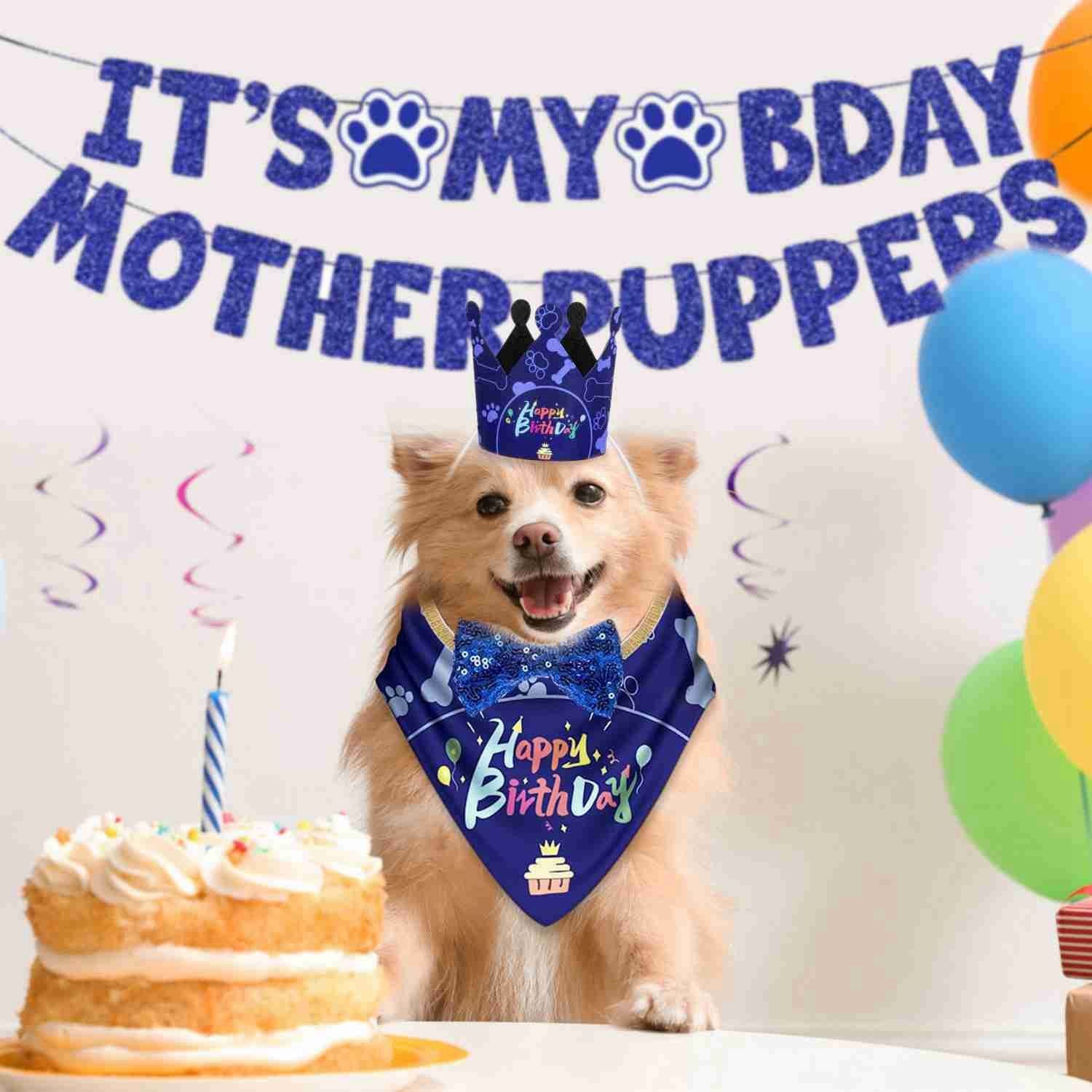 Dog Birthday Party Supplies, Boy Dog Birthday Bandana Set with Cute Dog Bowtie, Scarf