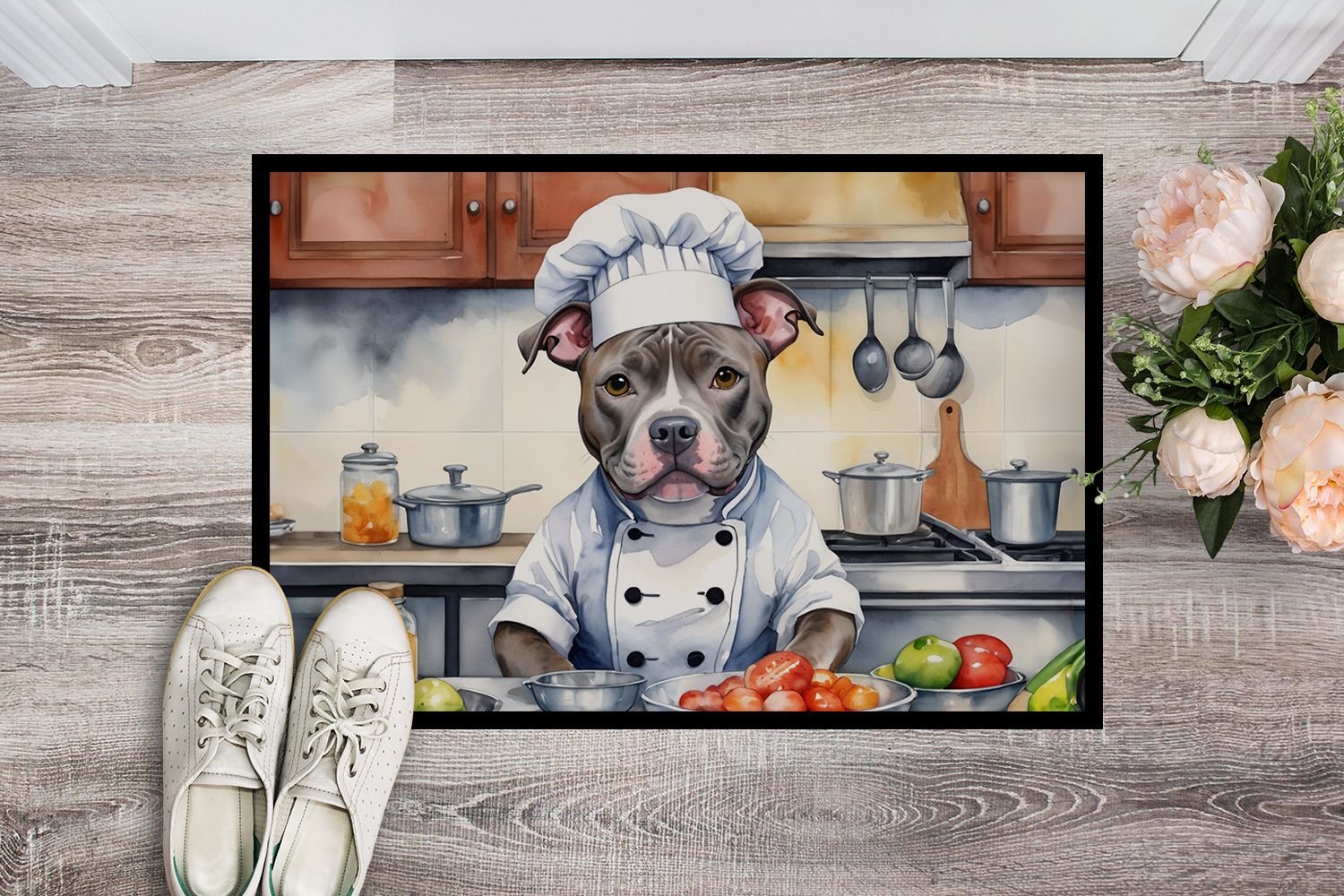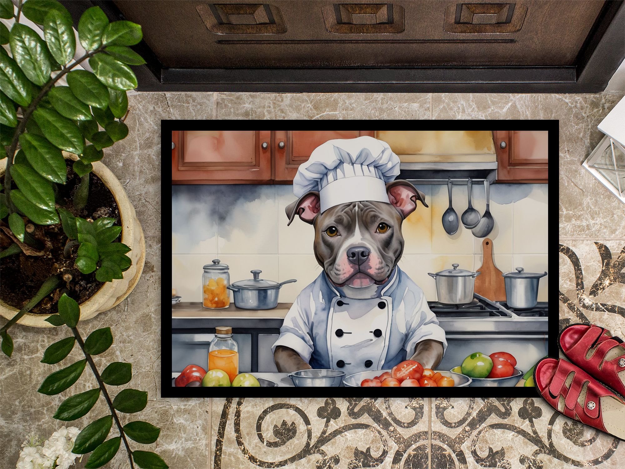 Home > NEW Pit Bull Terrier The Chef Doormat Front Door Mat Indoor Outdoor Rugs for Entryway, Non Slip Washable Low Pile, 18H X 27W