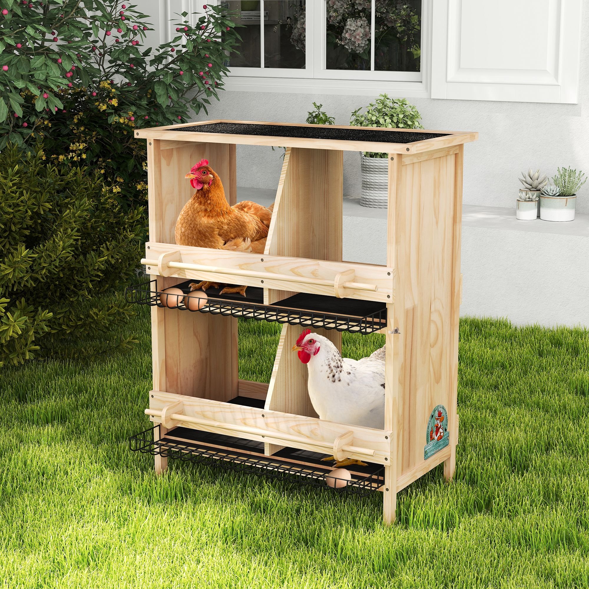 [Large Space]: Including 2 tiers, the chicken house has large space for pets to relax, play, nest and sleep. The clapboards in the middle enable chickens to enjoy themselves in a private space.
