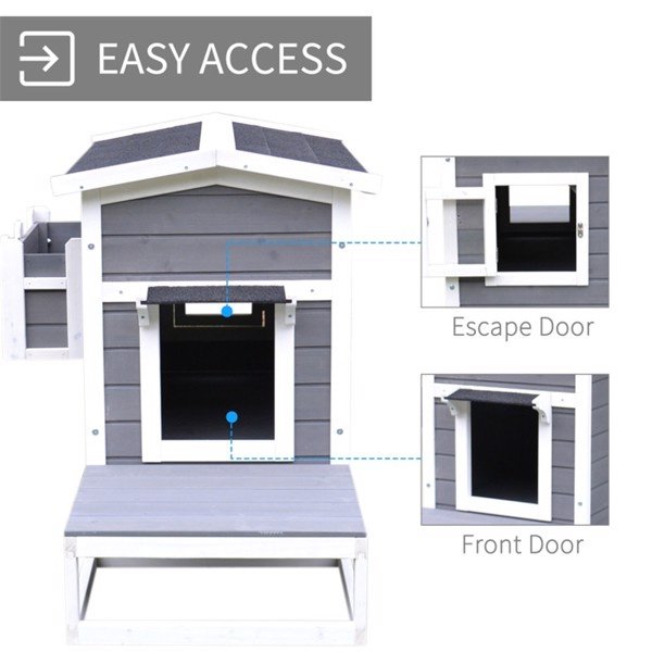 • - Main house of outdoor cat shelter with A-frame asphalt roof, protecting your pets during adverse weather